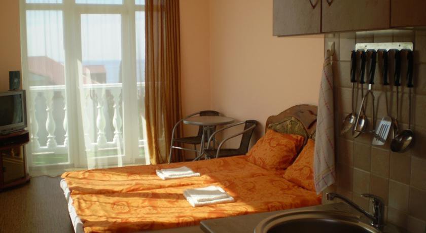 Номер с видом на море и горы. В номере балкон, двуспальная кровать 160*200 см, для третьего человека дополнительное место, а так же в номере туалет, душ, кухонка, чайник, посуда, одноконфорочная электроплита, холодильник, гладильная доска, утюг, фен,TV,Wi-Fi.
